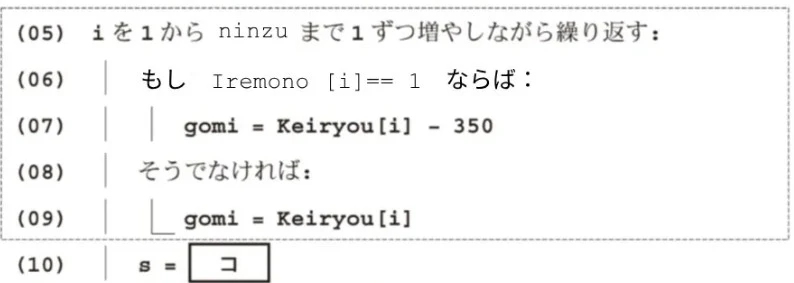 (10)行目は変数sにはごみの種類を表す数値を代入